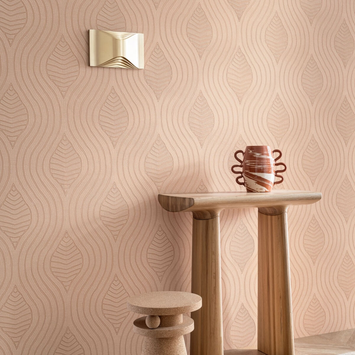 Roze geeft Brodelia een zachte, moderne zachtheid zonder zoet te worden. Het golvende dessin krijgt een vriendelijk accent dat creativiteit stimuleert; hierdoor is roze bijzonder geschikt voor slaapkamers, kinderkamers of studio’s. Combineer met licht hout, crèmekleurige stoffen en afgeronde vormen voor een uitnodigende, tactiele look. Daarnaast kun je roze volwassen stylen met greige, zand en gerookt eiken, zodat het geheel verfijnd en rustig blijft. Kies enkele glanzende details – denk aan keramiek of satijn – om de textuur te benadrukken. Het resultaat is een gebalanceerde, warme ruimte die een subtiele, hedendaagse elegantie uitstraalt.