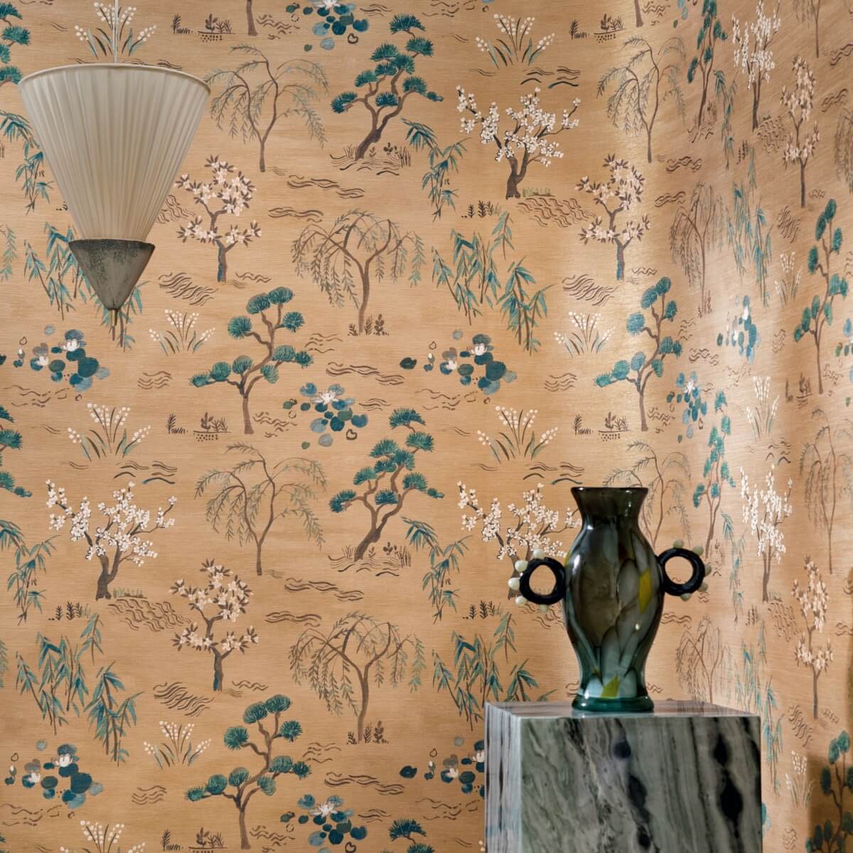 Casamance Legendes toont een verfijnd tafereel van Japanse landschappen waarin bomen, water en bloemen in harmonie samenkomen. De handgeschilderde motieven ademen rust en poëzie, terwijl de zachte glans en rijke details diepte en karakter toevoegen aan het dessin. Legendes brengt een gevoel van natuurlijke sereniteit en tijdloze elegantie in huis. Dit behang vormt een kunstzinnig statement dat tegelijk rustgevend en inspirerend is.