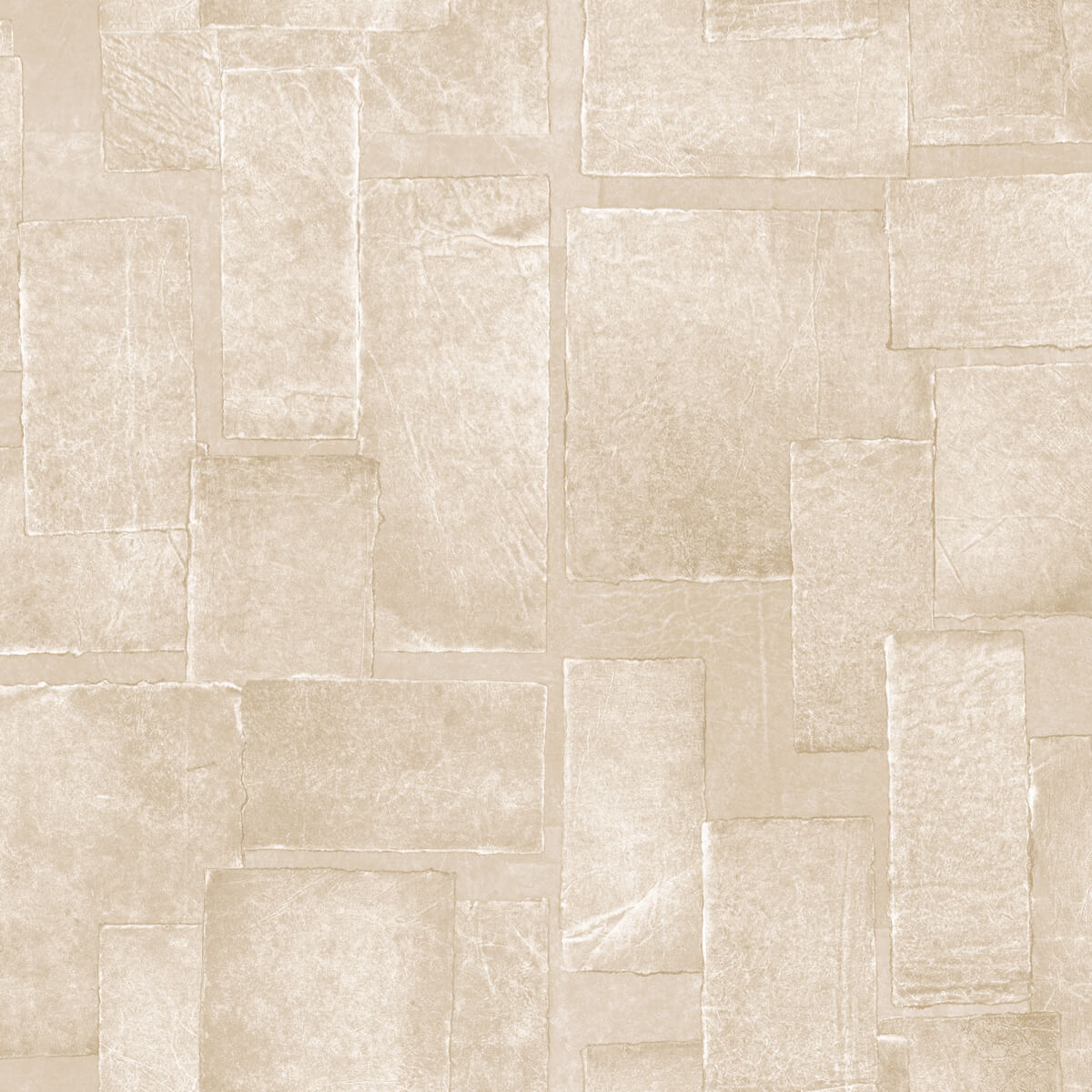 Dit Élitis Sangpi VP101801 behang heeft een luxe en artistieke uitstraling, gekenmerkt door een patroon van rechthoekige en vierkante panelen die een gelaagd effect creëren. De textuur doet denken aan met de hand bewerkt leer of een grove stof, wat het behang een tactiele en ambachtelijke uitstraling geeft.